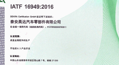 泰安昊達汽車零部件有限公司位于新泰市經濟開發(fā)區(qū)嶅山路7號,公司成立于2011年,是一家生產中、重型卡車底盤鑄鍛件、焊接件、發(fā)動機配件的專業(yè)廠家,廠區(qū)占地面積101畝,2018年建設年產300萬件汽車零部件項目,項目總投資3.16億元,總建筑面積3.6萬平方米,是新泰市汽車裝配產業(yè)鏈的重點項目、2018年、2019年泰安重點項目,現已建設完畢,于2019年1月1日正式投入使用,設備新上覆膜砂自動化鑄造生產線1條、熱模鍛生產線6條、自動化焊接生產線10條、CNC加工設備200余臺套。 主要產品:中、重卡車底盤配件、轉向配件、中后橋氣室支架總成、中后橋配件、前橋轉向節(jié)臂、焊接配件、發(fā)動機配件。產品主要銷往中國重汽集團、市場份額約50%,位居行業(yè)鑄件產品前三。 公司擁有IATF16949:2016國際標準質量管理體系認證,擁有實 ......
